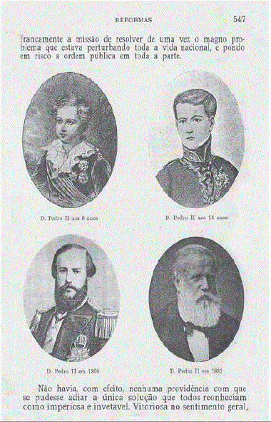 El otro libro de Rocha Pombo, Historia de Brasil, también trae un interesante painel de D Pedro II, distinto de las imágenes frecuentes en los libros didácticos, trayendo el emperador siempre anciano o siempre un niño de 5 años. Ver figura 1.