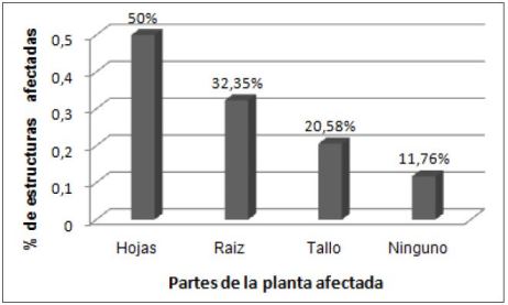 Los agricultores mencionaron que las hojas y raíces son las partes de la planta principalmente afectadas por las cochinillas de humedad.