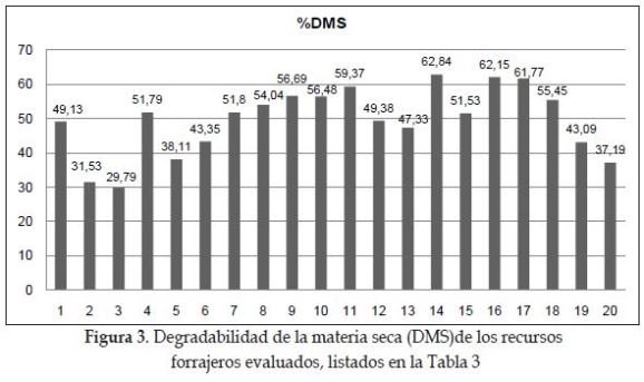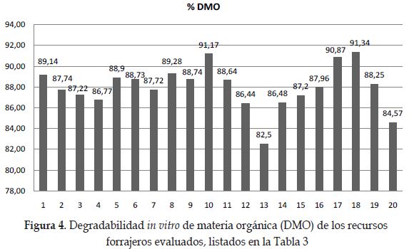 Los porcentajes en DMO, permiten afirmar que las plantas de rápido crecimiento como los Lolium sp. y otras gramíneas con mayor contenido de carbohidratos solubles, de fácil aprovechamiento por los microorganismos y sistema digestivo de animales, aminoran la emisión de gases efecto invernadero.