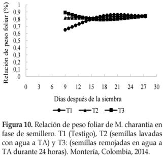 Uno de los principales tópicos de investigación básica que se justifica abordar dentro del estudio de M. charantia, es el análisis de crecimiento del cultivo, inicialmente en etapa de semillero, ya que es un proceso bastante rápido y de acuerdo con el manejo agronómico efectuado, hay influencia posterior en el rendimiento de frutos y su composición química (Fohs et al., 2014; Şavşatliy y Seyis, 2014).