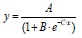 , donde: y = variable respuesta (área foliar, materia seca de hojas, materia seca total, en función de x); x = tiempo (ddt); A= asíntota, valor de y cuando x tiende a infinito; B·e–cx = factor de amortiguamiento, donde: B=corresponde a un factor de amplitud, no tiene significado biológico y solo toma lugar en el tiempo inicial, cuando x= 0 y C= factor de estabilidad relacionado con el valor de x, e = número de Euler.