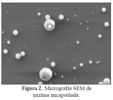 Las partículas obtenidas fueron evaluadas para determinar si hubo encapsulación de la enzima, adicionalmente se midieron las características del espectro (RAMAN), la morfología y el tamaño de las microcápsulas (SEM).