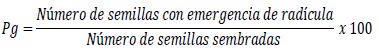 EG = energía de germinación, expresada en porcentaje de semillas germinadas respecto al total.