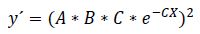 Debido a que el Pg se ajustó al modelo logístico, y=A/(1+B*e-cx), la velocidad absoluta de germinación (VAG) se calculó como la primera derivada de dicho modelo, y' (Calvo et al., 1994; Barraza, 2015), mediante el procedimiento PROC NLIN en el software SAS versión 9.1.3 (SAS Institute, 2008):