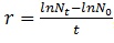 De la ecuación anterior se despejó la tasa intrínseca de crecimiento poblacional de la siguiente forma:Donde: ln=logaritmo natural.