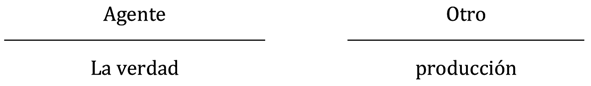 3) Cuatrípodo del discurso: por otra parte, Lacan construye el cuatrípodo del discurso como una estructura de cuatro lugares o casillas, en los que se inscriben cuatro términos utilizados por Lacan: Agente, otro, la verdad y producción. Los cuatro términos mencionados permiten entender la función que cada elemento tendrá al ubicarse en dichos lugares.