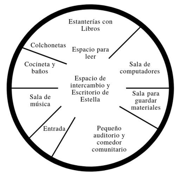En ese sentido, espacios como la ludoteca, dentro de la cual funciona un comedor comunitario, resultan más cercanos a las necesidades de los niños del sector. La ludoteca tiene un tiempo rápido, de la inmediatez, brinda soluciones a problemas cotidianos, es un lugar de cuidado en donde se da de comer y se juega; este tiempo concuerda con los tiempos de los jóvenes y del barrio. El barrio y su temporalidad no pueden esperar por la promesa a largo plazo de la escuela, por ello el esquema tradicional de la organización escolar resulta poco atractivo, y en lugar de acoger expulsa a los estudiantes.