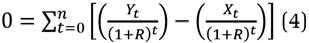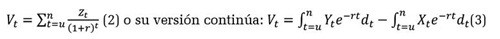 Donde Vt es el valor presente neto, t es el tiempo, r es la tasa de descuento temporal, u es el último año de estudios y n es la edad de retiro. Es económicamente conveniente continuar con los estudios si Vt > 0. La principal dificultad al realizar un análisis de valor presente es determinar qué tasa de descuento temporal debe emplearse. Para obviar este problema, en vez de calcular el valor presente neto se calcula la tasa interna de retorno (R), esto es, la tasa de descuento temporal a la cual Vt = 0, entonces: