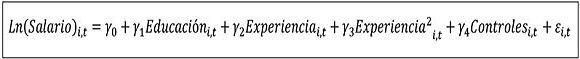 Para la implementación empírica del anterior modelo teórico, se estima econométricamente una función de ingresos para recuperar el valor de un parámetro (r) que represente el cambio en la remuneración derivado de un incremento en el nivel de educación del individuo. En este caso, la herramienta empírica utilizada en la mayoría de estos trabajos ha sido la ecuación minceriana de ingresos (Mincer, 1974), a través de la cual se estima el impacto de un año adicional de estudios en las rentas laborales de los individuos (Freire y Tejeiro, 2011).
