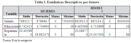 Las estadísticas descriptivas se detallan a continuación: