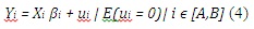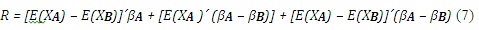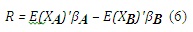 Siendo A y B los grupos a comparar. La descomposición de Oaxaca-Blinder consiste en la siguiente operación:
