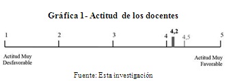 Puntualmente, para determinar la actitud de los docentes participantes en este estudio frente al apoyo de las TIC en actividades investigativas, se utilizó una escala tipo Likert que permite analizar los resultados clasificándolos desde actitudes muy favorables en torno al tema de estudio, hasta actitudes muy desfavorables (Baptista, Hernández & Fernández: 1990).