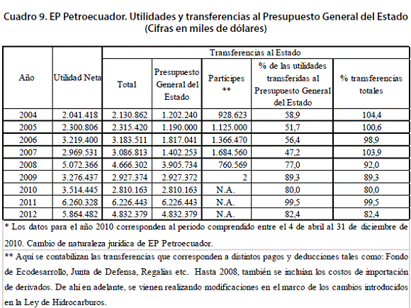 Además, a pesar de que EP Petroecuador, goza de autonomía presupuestaria, financiera, económica, administrativa y de gestión, es el Banco Central quien recibe y distribuye los ingresos generados fruto de la comercialización interna y externa tanto del crudo como de derivados (Campodónico, 2008). Las empresas reciben inicialmente el monto de los costos y gastos en los que han incurrido, y presentan su plan de inversión. Los excedentes, se transfieren directamente al Presupuesto General del Estado (PGE).