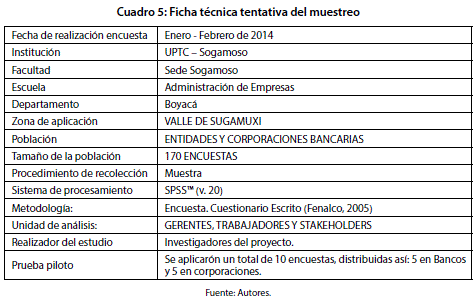 3.3. Población, muestra, tipo de muestreo y tratamiento de la información. Se realizó una muestra de 170 encuestas distribuidas en 17 por entidad, para un total de 10 entidades y corporaciones bancarias de la ciudad de Sogamoso.