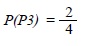 Finalmente, si no se considera un estricto orden de resultados, sino la combinación de los mismos, el tercer participante puede obtener el resultado SC o CS que, implica dos posibilidades lógicas dentro del conjunto de eventos factibles del universo A, lo que implica que el valor de probabilidad, en este caso sea:
