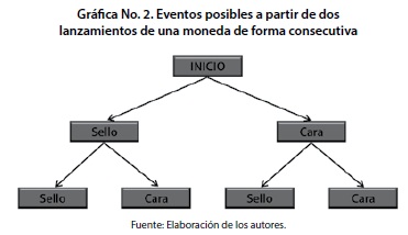 Ahora considérese un ejemplo típico en el cual tres individuos presentan intereses en conflicto: pretenden apostar una moneda lanzándola dos veces y anticipando su resultado. Las posibilidades se exhiben en el gráfico No. 2.