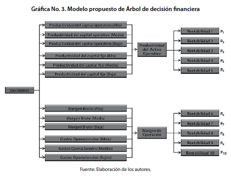 La relevancia de la modelación financiera efectuada a través de los árboles de decisión posibilita advertir que existen alternativas diversas que a su turno implican la instantánea generación de diferentes escenarios. Por ejemplo, si una empresa pretende incrementar sus niveles de rentabilidad hacia el futuro, puede considerar en tiempo presente una amplia gama de situaciones que debe advertir, v. gr. que la productividad del capital operativo sea baja, mientras que la productividad del capital sea alta y que al mismo tiempo el margen bruto sea medio y los gastos operacionales sean bajos. Todas esas posibles combinaciones probabilísticas conducen a la existencia de escenarios probabilísticos para la productividad del activo operativo y el margen de operación, lo que finalmente origina una amplia cantidad de escenarios para la rentabilidad a los que el inversionista y la empresa deben hacer frente mediante la anticipación de política económica o financiera.