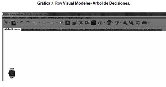 En seguida el programa permitirá la apertura de una nueva ventana denominada “ROV Visual Modeler- Árbol de decisiones” en el cual, por defecto, aparecerá el nodo de arranque o “Start”.