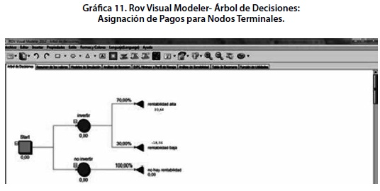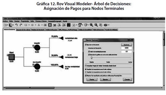 Para la construcción de los árboles de decisión se utilizó el programa RISK SIMULATOR que posibilita la identificación, la medición y valoración del riesgo en proyectos de inversión y permite la simulación y generación de escenarios soportados en diagramas de influencia. El software es utilizado ampliamente para elaborar pronósticos, control de calidad y análisis de sensibilidad.