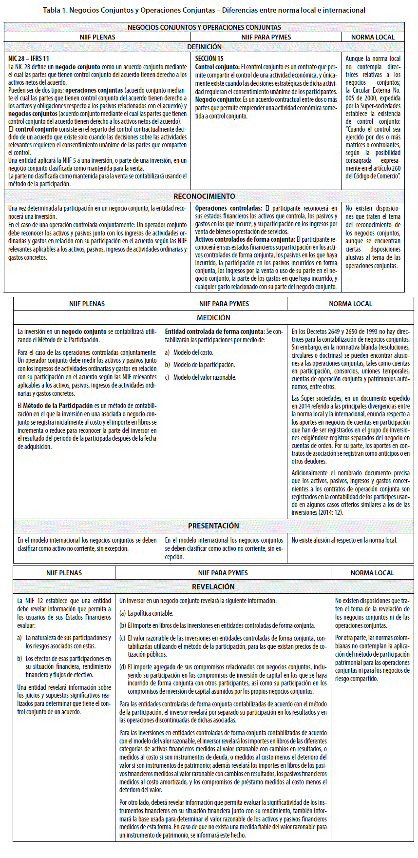 Palavras-chave: Acordos conjuntos, Colômbia, NIIF, Joint Venture. JEL: M16, M40, M41, M48.