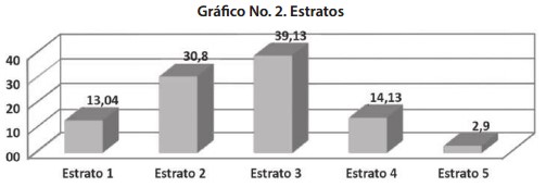 Los estratos a los que pertenecen los administradores de empresas de la Universidad de Nariño se encuentran entre los estratos 1 a 5, siendo el más representativo los estratos 1, 2 y 3 con el 82,97%, lo que lleva a pensar que siendo una Universidad Pública está cumpliendo su función social preparando el talento humano de los estratos más bajos.