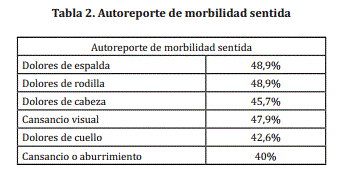 A continuación se presenta la información recolectada en el autoreporte de morbilidad sentida (Ver tabla 2), que aporta a la categoría de salud laboral, y se compone de antecedentes médicos y manifestaciones actuales.