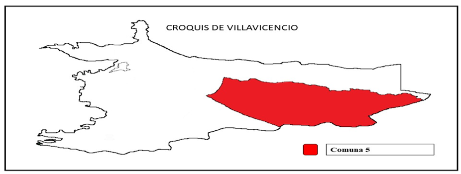 La recolección de información se llevó a cabo, en la comuna cinco, por ser la más grande de las ocho que comprenden la Ciudad de Villavicencio, al conformarse por 108 de los 435 barrios de la ciudad, que se constituye en el territorio contexto de estudio, como se muestra en la Figura 1.