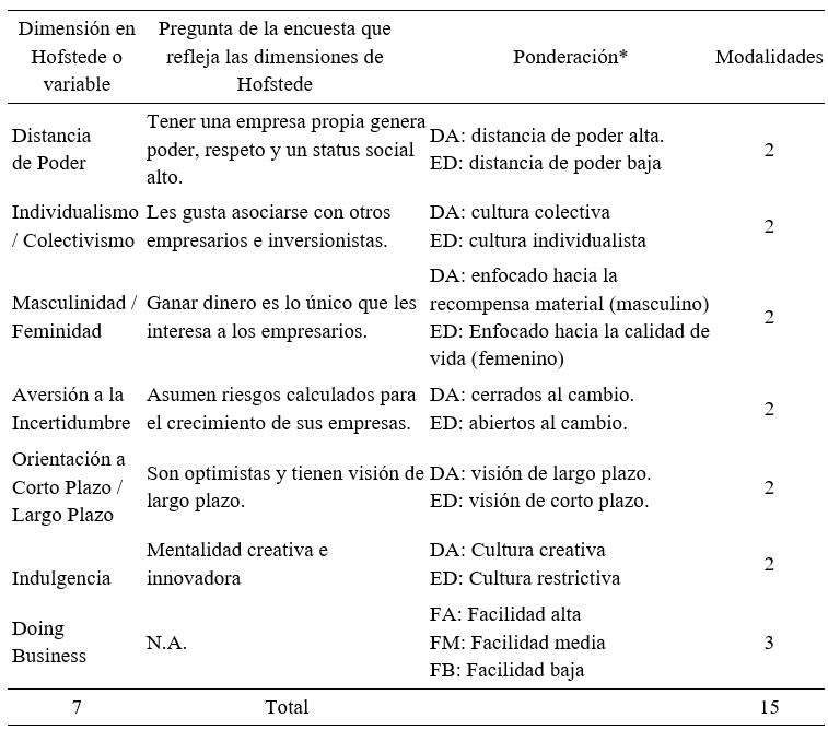 Palabras Clave: dimensiones culturales; Doing Business; GEM; Hofstede; intención empresarial.