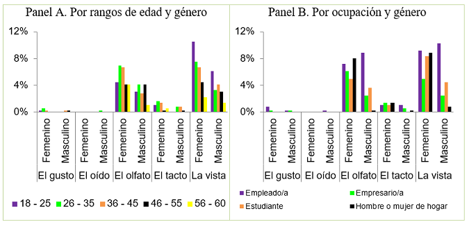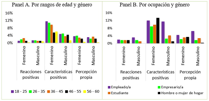 En cuanto a la ocupación, en el Panel B, se puede notar que la mayor sensación es de felicidad para las mujeres empleadas y amas de casa. Por el contrario, para los hombres empleados no hay una sensación específica a partir del aroma seleccionado. En cuanto a los empresarios y estudiantes, la mayor sensación también es la de felicidad.