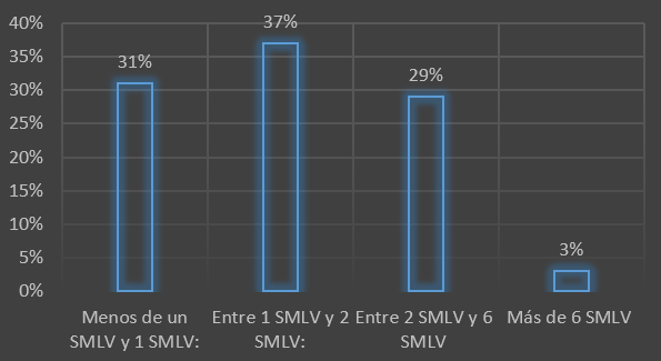 Como se expresa en la Figura 8, el 37% de las familias consultadas, percibe ingresos entre 1 y 2 salarios mínimos, lo cual es relativamente bajo si se considera que son familias numerosas que viven de las actividades turísticas de sol y playa como su principal fuente de ingreso.