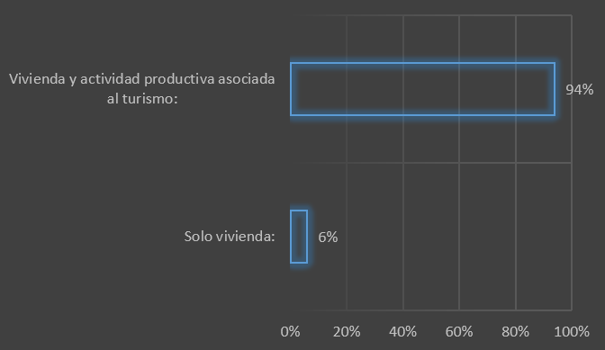 Como se expresa en la Figura 1, el uso de la vivienda está en un 94% asociado a actividades productivas de tipo turístico como tiendas, estancos, restaurante u hospedajes en disposición de los turistas o visitantes. Además, el resultado refleja el carácter famiempresarial de las unidades de negocio disponibles desde los propios lugares de residencia de las comunidades.
