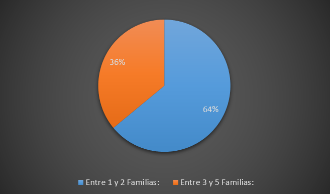 Como se expresa en la Figura 4, el 64% de las viviendas consultadas están habitadas entre una y dos familias y el 36% están habitadas por 3 o 5 familias, lo que muestra claramente una vida en comunidad y probable hacinamiento, a lo cual se suman las labores famiempresariales asociadas al turismo, lo que hace compleja la convivencia en dichas viviendas.