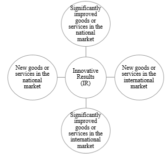 The absence of general measures representing the different innovation dimensions led to constructing a proxy variable as Innovative Results (IR). To measure it, new or significantly improved products measure were used (see Figure 1), according to the Oslo Manual (Young, 1996). The results of business patents were excluded because not all innovations are patentable, nor are all innovations patented (Griliches, 1990). Following Romer (1990), although private companies try to protect their innovations through patents, not all knowledge ends up becoming a product protected by a patent or other protection mechanism for intellectual property.