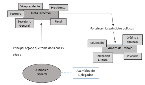 Para comprender la dinámica organizativa se puede sintetizar su forma de organización en el siguiente esquema (Figura 1).