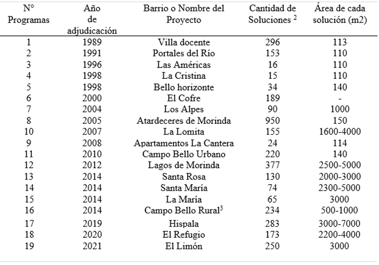 Proyectos de Solución de Vivienda en Popayán 1989-2021