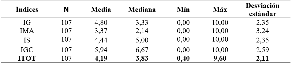 Resultados por índice para toda la muestra
