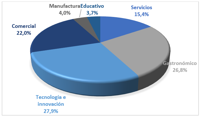 A partir de darle a los participantes un concepto unificado de franquicia, entendido esta como el contrato por el que una empresa (la franquiciadora) cede a otra (la franquiciada) el derecho a comerciar ciertos productos o servicios, y frente al contexto hipotético, que, si tuvieran los recursos disponibles y tuvieran la intención de invertir, el sector de tecnología e innovación es el predilecto para desarrollar un emprendimiento a través de este modelo (27,9%), como se muestra en la Figura 4. En segundo lugar, se encuentra el sector gastronómico con un 26,9%, resaltado por cadenas como Domino's Pizza, Subway, KFC, McDonald's, Cocheros, entre otros. El sector comercial cuya característica es desenvolverse en cualquier mercado e industria (22%). Mientras que un 15,4% invertiría en el sector servicios, un 4,0% en el manufacturero y solo un 3,7% en el sector educativo.