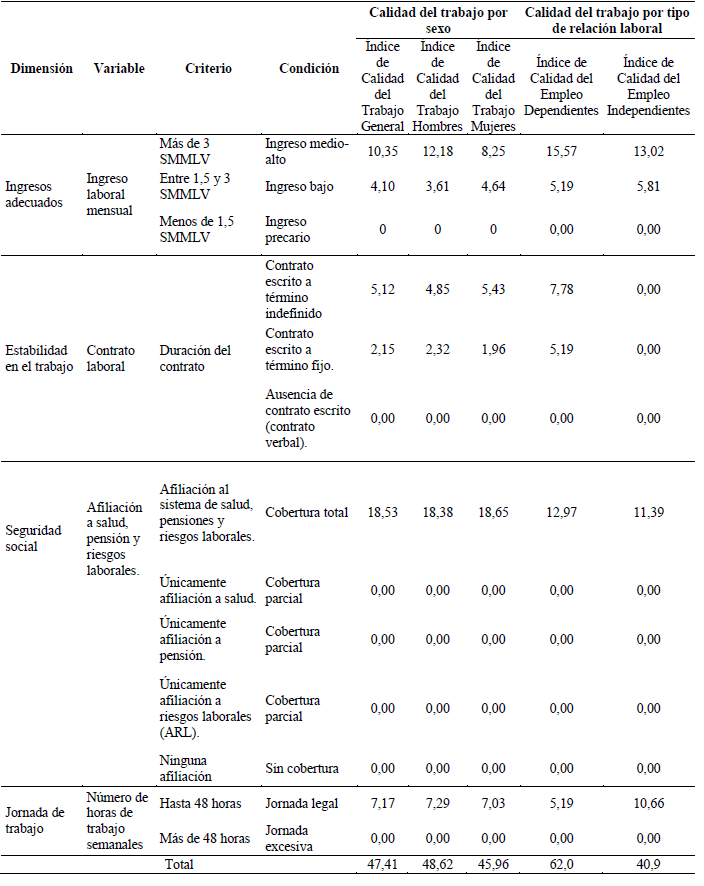 Índice de Calidad de Trabajo (ICT) según metodología OIT (1999)