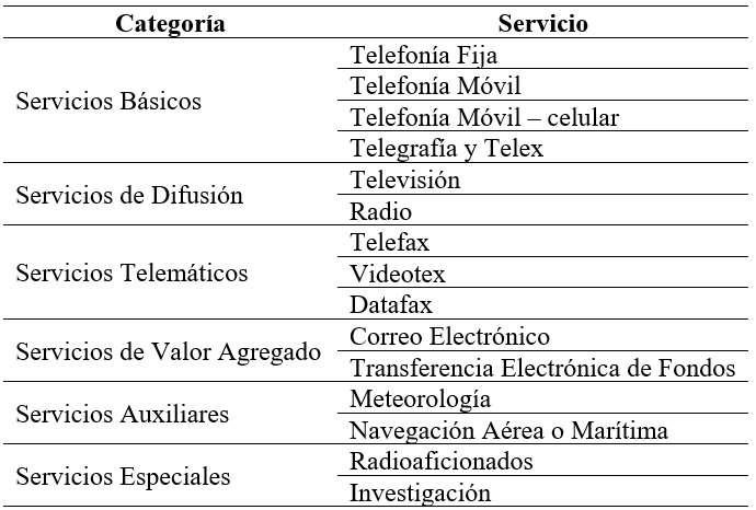 Este periodo se caracteriza por una regulación, basada en la liberalización y mercantilización de las comunicaciones en Colombia, inicia con la aprobación y aplicación del Decreto 1900 de 1990 (art. 4), el cual, legitima las bases de la participación privada, la eliminación de monopolios estatales y la clasificación de los servicios públicos de telecomunicaciones (ASOCEL, 2004; CINTEL, 2006, 2007; CRC, 2010; CRT, 2010; Montenegro y Niño, 2001; Revista Dinero, 2010; Tabarquino, 2011; Tabarquino, 2018 ; Uribe, 2005), a continuación se referencia la clasificación de los servicios de telecomunicaciones en la Tabla 2: