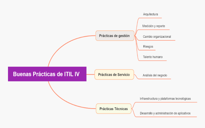 ITIL SVS presenta un total de 34 prácticas de nivel de servicios, divididas de la siguiente manera: 14 prácticas de administración general, 17 prácticas de administración de servicios y 3 prácticas de gestión técnica (Lea, 2019).