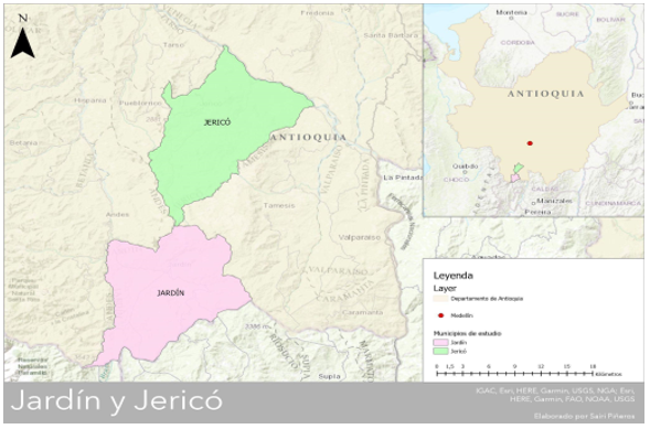 Due to this, the objective of this research was to identify the perception of the actors in the tourism sector chain on the impacts generated by Covid-19 in two municipalities in the department of Antioquia-Colombia, located southwest of Medellín (see Figure 1). According to data from the Secretaría de Turismo de Antioquia (2021), these two municipalities, Jericó and Jardin, have a high tourist vocation; for both regions tourism represents 80% of their economic activity, the other 20% is integrated by the agricultural sector, especially coffee, livestock and some other services.