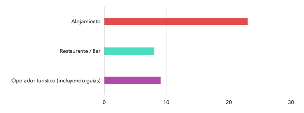In this analysis, it was found that the categories analyzed allow for an integration between the economic situation of the actors in the tourism sector, with respect to income and labor commitments, employment generation, variation in sales and the economic situation of the company, which made it possible to show that the economic performance of a sector has negative effects, in this case, which have a direct impact on other economic and social activities. Figure 2 shows the type of tourism organizations that participated in the research.