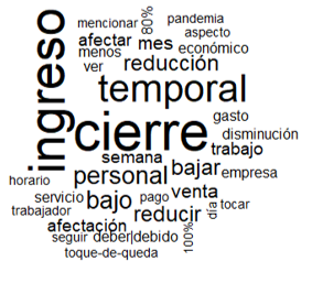 We begin by analyzing the economic situation of tourism stakeholders in the two selected municipalities. Figure 3 shows the word cloud to the open question on economic impacts on tourism businesses due to the effects caused by the pandemic.