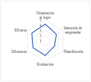 Orientación al logro, intención de emprender, planificación, evaluación, eficiencia y eficacia |