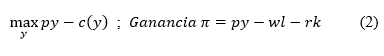 Finalmente, se determina el uso del capital fijo deseado por el empresario y que le permita maximizar el beneficio (Ecuación 13).