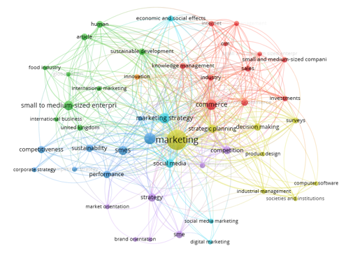 La clasificación de la información se hace bajo la técnica de PRISMA, sustentada por Moher et al. (2014) y se utilizó la herramienta Vosviewer para analizar la co-ocurrencia temática, esta se hizo a partir de la búsqueda en Scopus de “marketing strategies in small and medium-sized companies”, donde se visualizaron 245 documentos, luego se analizaron los principales componentes que le dan apoyo a la investigación; teniendo en cuenta esta, técnica se detallaron los aspectos de la siguiente forma:
