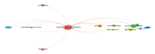 Se pueden ver los países que sobresalen en investigaciones de estas temáticas, siendo estos: Reino Unido, Estados Unidos, Alemania, Finlandia y China.