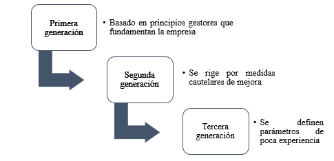En Sandoval y Guerrero (2010), se puede apreciar un estudio hecho a 30 empresas de familia de diferentes sectores productivos, la idea del estudio fue crear un esquema de gestión para aportar a las empresas que se han construido desde enfoques familiares, los principales resultados evidenciaron que el 60% de los negocios se han construido desde un enfoque natural, pero con el pasar del tiempo y debido a los resultados positivos, se han pasado a sociedades de responsabilidad limitada. En la Figura 4, se observa la caracterización de funciones a partir de las generaciones que gestionan las empresas de familia.