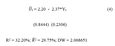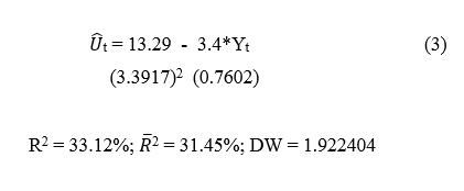 The neoclassical tradition tried to give a lucid answer to the recurrent question among economists in the sixties. ¿How much economic growth is necessary to reduce unemployment, so that an economy reaches full employment? Thus was born a famous empirical relationship enunciated in 1962 known as Okun's Law in honor of its author, the economist Arthur Okun in 1962. This law states that unemployment entails enormous intertemporal economic and social costs due to its depressive effects. Next, Okun's Law is estimated for the Colombian economy, based on Equation 2: