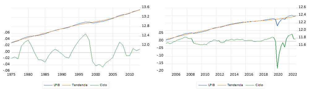 Business Cycles in Colombia 1975-2013 and 2005:1-2022:4 (Hodrick-Prescott filter)